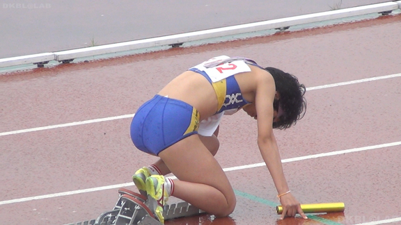 いきなりビックリ!やわそうな白肌に容赦なく食い込む黒×エンジのVパンツ。リレーの様子のようで、バトンを持って爆走してくる娘も同じような白肌。適度な太さの太ももとの相性が抜群。これは必見のシーン。20分ころにはまたまた氏お得意の競技終わり選手のアフターシーン。汗を拭き拭きジャージを着るまでのシーンを。そして今回も豊富な選手を送り込んできている黄緑Vパンツチーム。1500m走などでもVパンという娘がいるのが素敵。