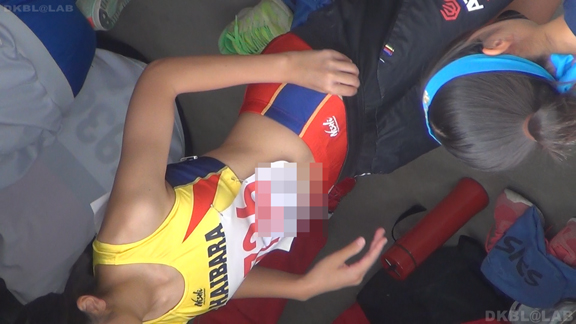 フィールド競技にもご注目ください、と高跳びの様子。スパッときれいなコバルトブルーレーシングパンツ娘、鉢巻きのようなものを準備し額に巻くのかな…と思いきやなぜかおなかあたりに巻きつける。何か効用があるのだろうか…一部始終を全収録。レーブルのお尻側に鉢巻様の布きれを入れる瞬間がセクシー。同じチームの別選手もおります。こちらはスタンダードに額に鉢巻を締めレース。(※この作品には音声が収録されておりません)