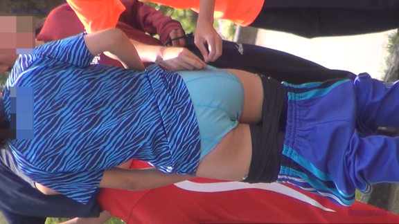すごい!Ⅴユニ娘の雨あられ状態!競技衣装のままグラウンドに寝転がりストレッチする黒Ⅴユニ娘、日焼けとひざの汚れがグッときます!全体に待機中のシーンが多め!ブレもなくきれいに収録!水色Ⅴユニチーム娘が競技衣装のまま壁にもたれているシーンが素晴らしい!全体からヨリまで見ごたえシーンが盛りだくさん!