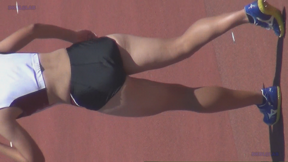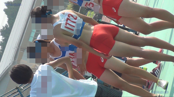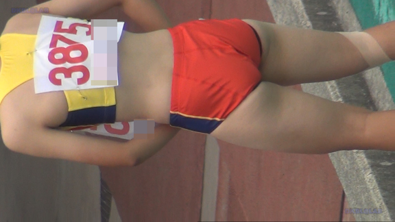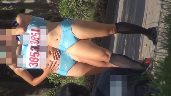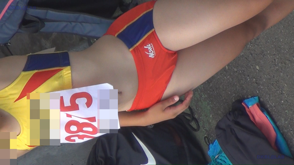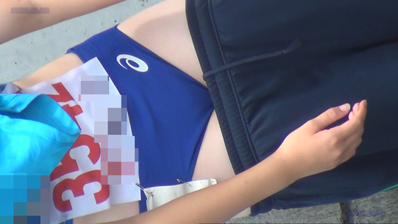 リレーの待機中のシーンから。横アングルで赤スパユニ娘達を中心にヨリによってます!続いては幅跳びシーンへ。。。青色Ⅴユニ娘、黒色Ⅴユニ娘たちの活躍がご覧いただけます!そしてご好評のオフスタイルのシーンへ!ジャージをずらし念入りにⅤユニの着こなしをチェック!素晴らしいシーンであります!Vユニのままレース後のまったりシーンもクローズアップ!