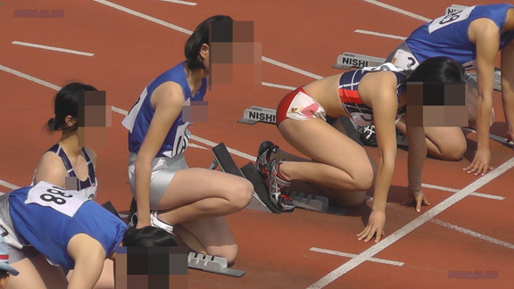 いきなり紺・赤Vユニ娘のスタートシーンから!しかも連発です!出走後のゼッケンを外すシーンもじっくりと。。。続いてはランパンユニ娘の皆さまの登場!ビギナーからちょい上の初々しい走りをまったりとご覧いただけます!短距離のスタートブロック付近のウォーミングアップシーンを中心に、、、薄手のランパンがブロック調整時にキューっと引っ張られるところをじっくりと!おっとここで38分ごろですが白ランシャツ・水色ランパンの娘に注目!薄手の白ランシャツにうっすら浮き出るものがとてもGOOD!長尺でとらえております!