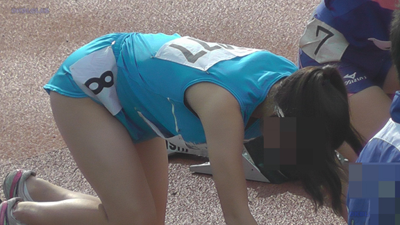 短距離走の緑Vユニ娘に注目!出走前の集中で桃色インナーが!!!4分ごろは幅跳びのシーンへ!ビギナーからちょい上娘の大きめランシャツのワキをしっかりとらえております!17分ごろよりハードル走シーンへ、こちらでもビギナーからちょい上大きめランシャツ娘が活躍!24分ごろより紺・赤Vユニ娘が登場!中距離走のスタートシーンをじっくりとご覧いただけます!そして27分ごろから短距離シーン。こちらも紺・赤Vユニ娘が!大きめランシャツ娘も!スタートシーンのコラボ共演!!34分ごろからのハードル走ではビギナーからちょい上大きめランシャツ娘のオンパレード!大き目インナーがランシャツからはみ出てる逆バージョンの娘もいてすごい状況になっちゃってます!
