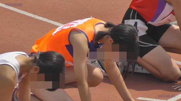 フィールドのシーンからスタート!高跳びのシーンでは、バーを跳び終えてマットの上から起き上がる時に見せる、大き目ランシャツ娘の前かがみ姿や次の出番を待つ間の上着着脱シーンなどとても萌えます!そして29分ごろからは短距離シーンへ!スターティングブロックを前かがみで調整する姿やスタート練習をする姿など大きめランシャツ娘の魅力盛りだくさん!なかには通常体操着で出場の娘もいて、初々しさも存分に満喫!37分ごろからラストまではチーム対抗リレーシーン!出走待機シーンではビギナーからちょい上娘の緊張感あふれる真剣な表情がご覧いただけます。