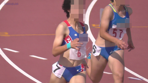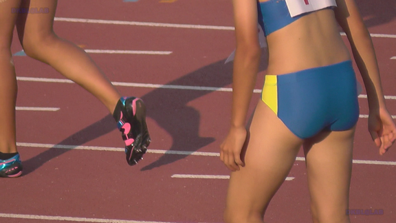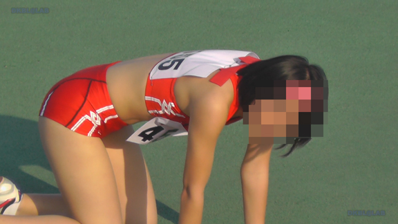 フィールドのシーンのち2分ごろよりリレーのシーンへ!最終走者の黒Vユニメガネっ娘のストレッチ(大き目インナーがこぼれてマス)などをじっくりご覧いただいたのち、、いよいよレースの始まりです!レース後がさらにこぼれちゃってます!!そして6分ごろよりフィールドシーン、11分ごろより中距離のシーンへ。好天に恵まれVユニ娘・スパユニ娘たちのユニの凹凸がクッキリ!21分ごろよりフィールドシーン、黒Vユニ娘・紺Vユニ娘の前かがみストレッチなどをとくとご覧いただけます!